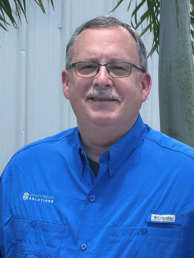George began his Concrete career in 1976 with a local seawall installer and producer of concrete seawall. In 1984, George moved into the Precast Industry in a role of concrete Batch Plant Operator utilizing a ready-mix style facility and concrete mixer trucks. In 2004, George was offered a fresh career path with a newly created Safety/Environmental role at his local facility, and the rest is history. Embracing the role, with his continued education and certifications, in 2008 George took on a larger role as a Regional Safety and Environmental Coordinator overseeing multiple Precast locations in Florida. Following a brief retirement, in 2023 George brought his Safety and Environmental expertise to the Quality Precast Solutions team where he currently remains working hand in hand with our operations team, teaching and training all aspects of maintaining a safe and healthy workplace while being an environmentally friendly neighbor.
